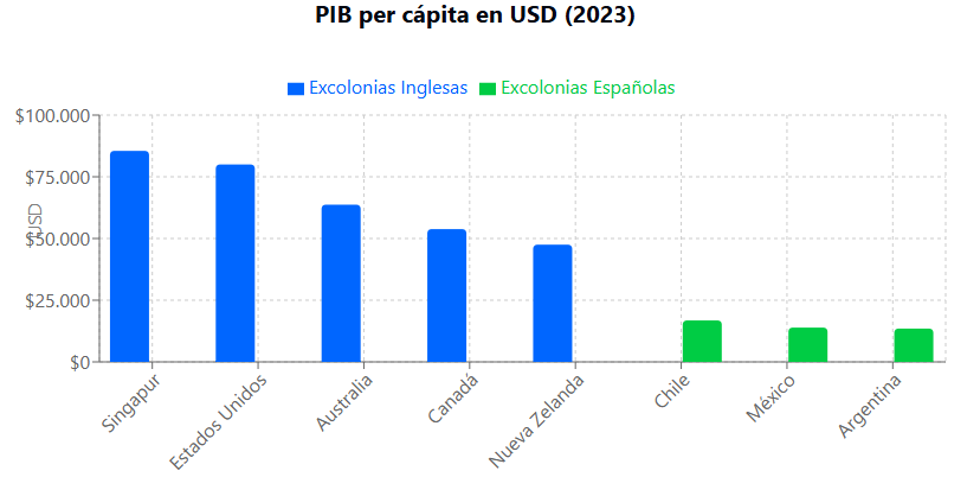 Las instituciones inclusivas son el cimiento sobre el que se construye todo lo demás.Hagamos un juego mental rápido: toma 10 segundos y enumera países que sean ex colonias británicas y sean potencias económicas. Por ejemplo: Estados Unidos, Canadá, Australia, Nueva Zelanda, Singapur, Hong Kong (antes de su devolución a China)... Bien, ahora, haz el mismo ejercicio con países que sean ex colonias españolas. ¿Cuántos has podido nombrar? ¿Alguno?