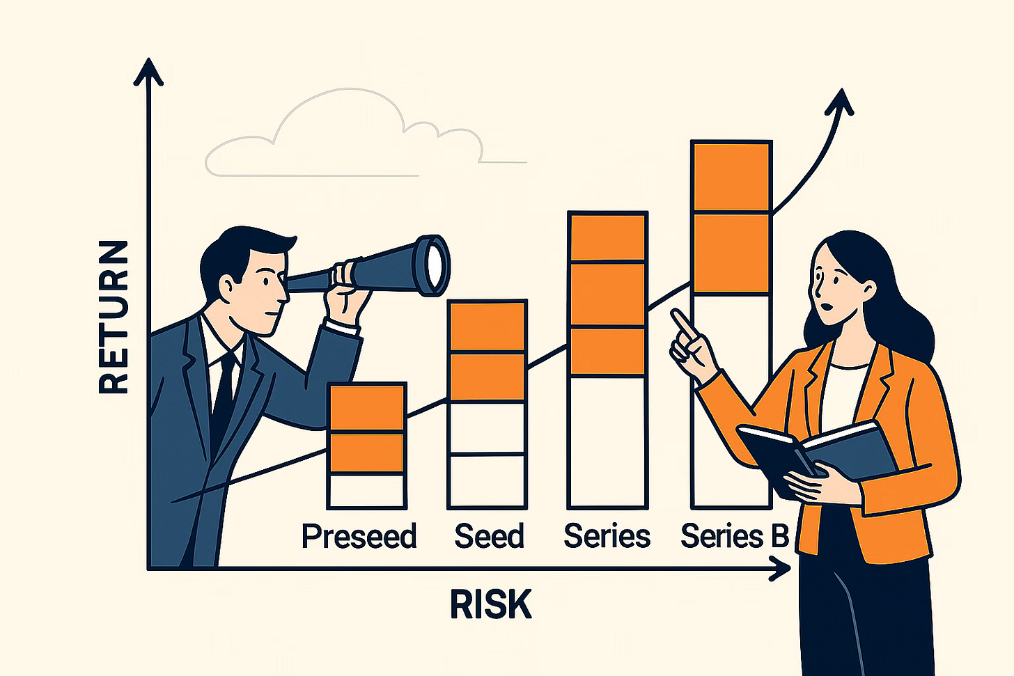 En el venture capital, uno de los dilemas más importantes que tiene que resolver el inversor no es sólo en qué empresa invertir, sino en qué momento hacerlo. Desde las fases más tempranas, donde todo es hipótesis e incertidumbre, hasta etapas más avanzadas, donde ya hay métricas y realidades tangibles, cada estadio ofrece una combinación distinta de riesgo y retorno. Para tomar esa decisión, los inversores analizan no sólo el atractivo riesgo/rentabilidad de cada etapa, sino también en cuál tienen más afinidad personal, experiencia, contactos o una ventaja competitiva concreta. En definitiva, dónde tienen una capacidad real de marcar la diferencia. Al final, se trata de jugar en el terreno donde pueden generar más valor… y más rentabilidad.
