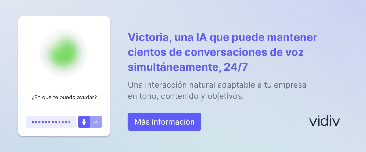 Te presentamos a Victoria: un agente conversacional de voz basado en inteligencia artificial. Transformará tus operaciones, desde ventas hasta soporte, liberando a tu equipo humano para tareas estratégicas.