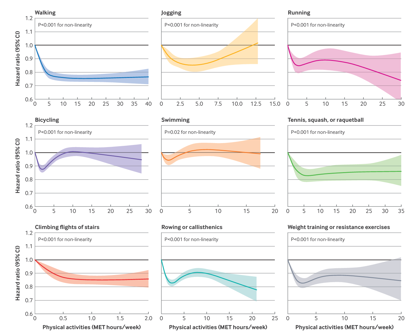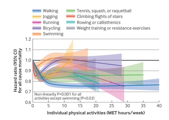 Su alcance: Trata de entender el impacto en mortalidad de diferentes actividades físicas populares y, como decíamos, de su combinación.