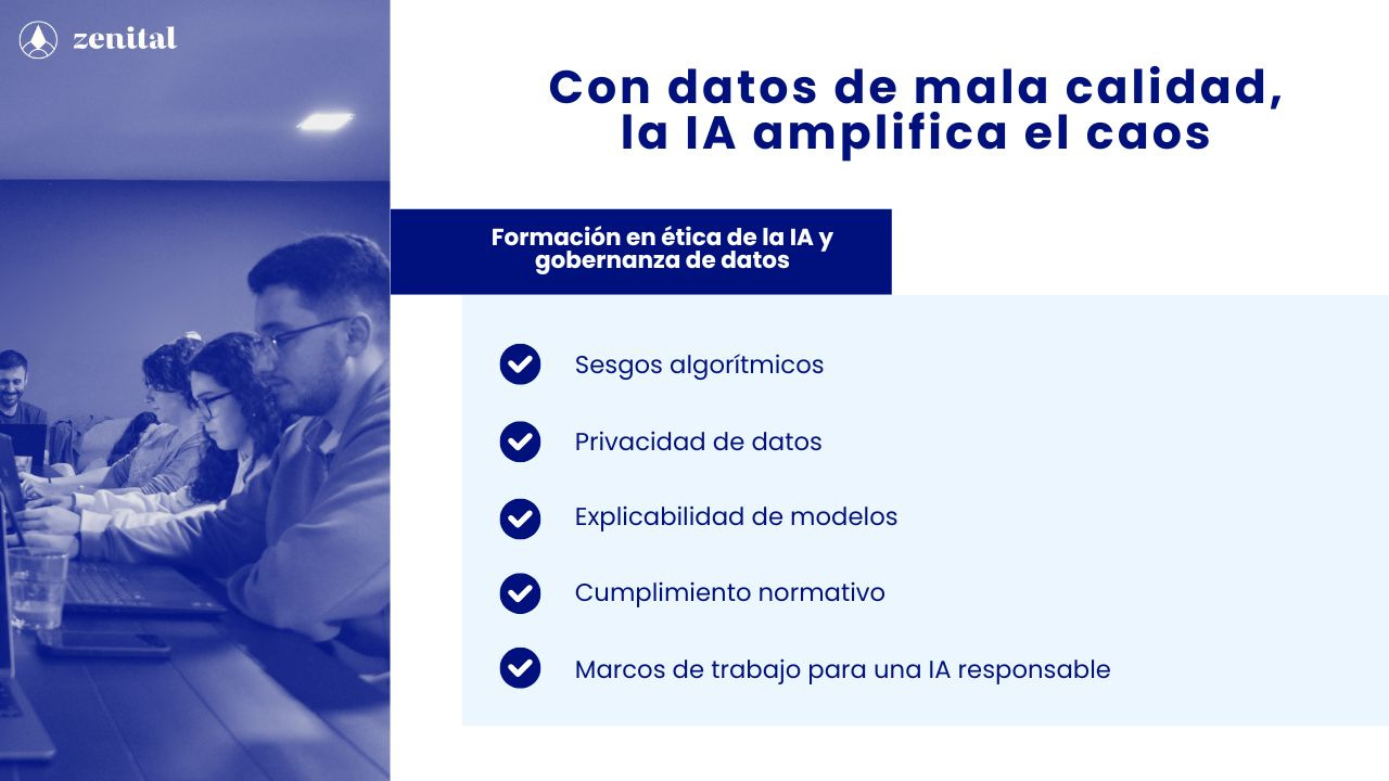 Abordamos estos aspectos (entre otros muchos) en nuestras formaciones sobre ética de la IA y gobernanza de datos. ¿Buscas adoptar IA con todas las garantías? Consúltanos y diseñamos una propuesta conjunta completamente personalizada.