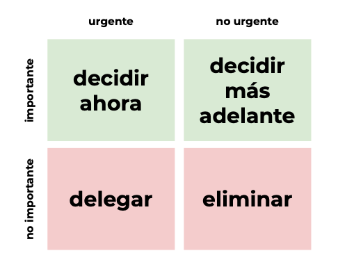 De hecho, ante una decisión, seguramente la primera pregunta a responder es si te corresponde a ti tomarla. Aquí puede que te sea útil la matriz de Eisenhower: