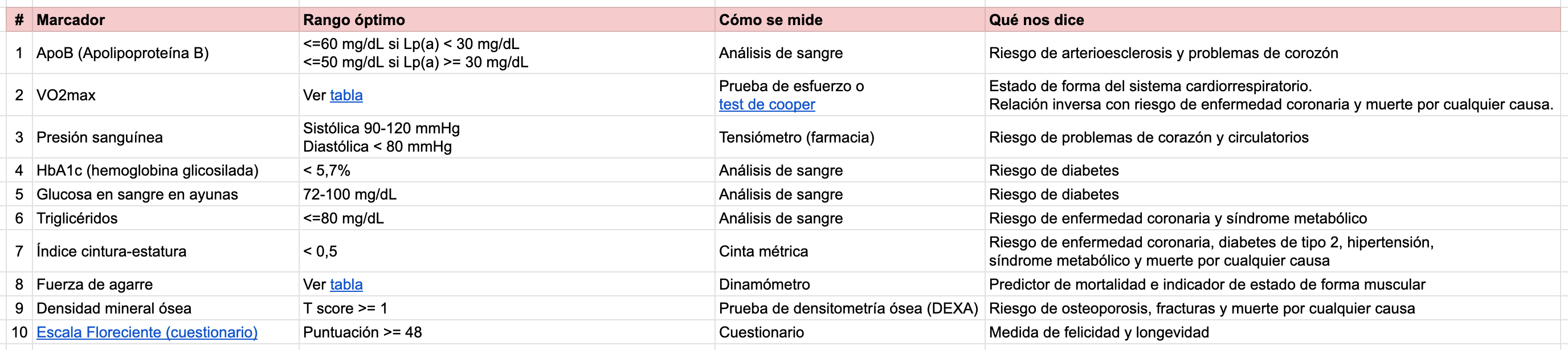 Precisamente una de las cosas que más me gusta de este reto es la definición de ese conjunto de indicadores de salud y de sus valores óptimos, algo que nos puede servir tanto si queremos participar ahora en él o no.