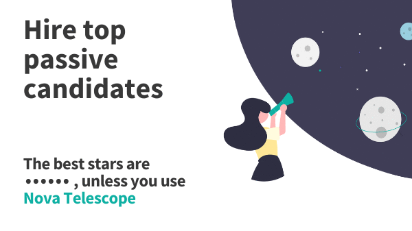 Por suerte, tenemos la solución: 🔭 Telescope, una plataforma desarrollada por Nova, te permite recibir preselecciones de 3-5 candidatos que encajen en la posición que quieras cubrir... ¡En dos días laborables!. Estas preselecciones son realizadas por nuestro equipo de Talent Managers, tras analizar más de 200 data points de nuestros candidatos y conociendo muy bien a cada uno de ellos.