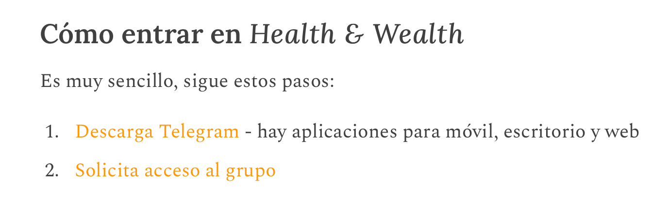 Nuestra comunidad privada en Telegram: Health & Wealth